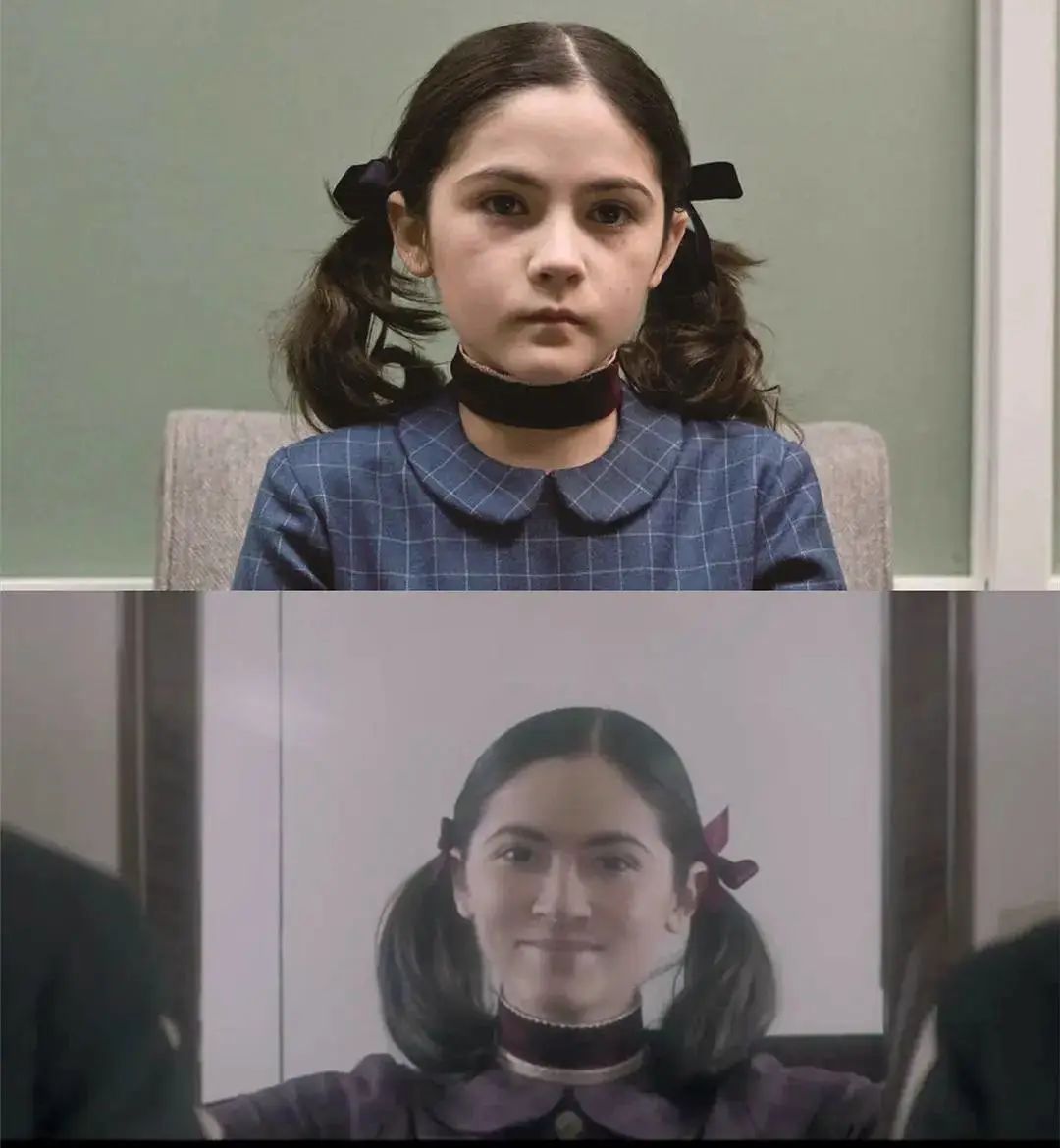 《孤儿怨》当年的惊艳有9成要归功于主演-伊莎贝拉.弗尔曼的人物形象,孩童般纯洁的外表下是一个成人的扭曲心智,蛇蝎一样的心肠和步步为营的算计,集合成一个个“杀母诱父”的收养噩梦。