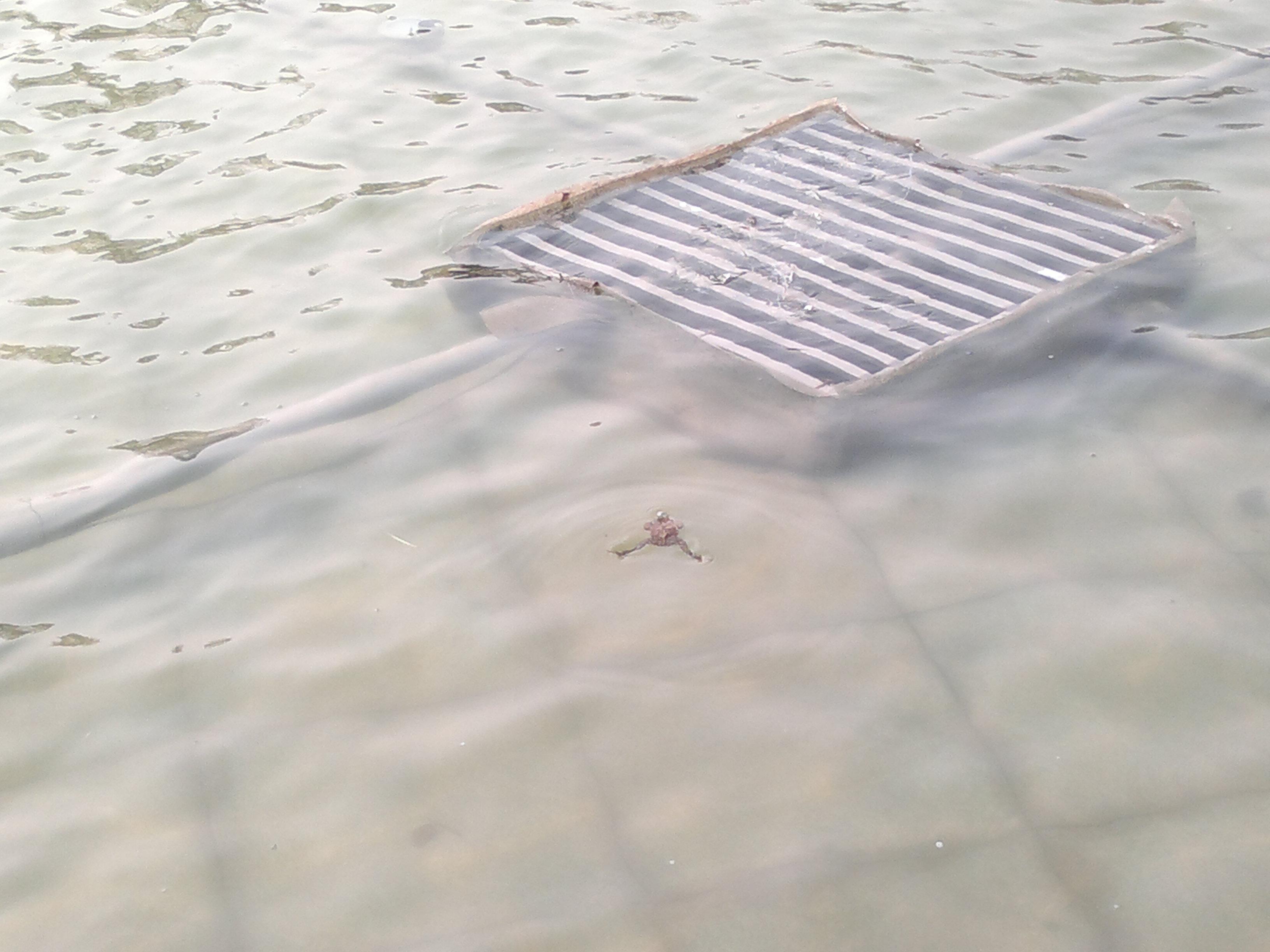 水池里的小青蛙超级可爱,想学习蛙泳的,一定要跟它学习一下,非常标准哦~