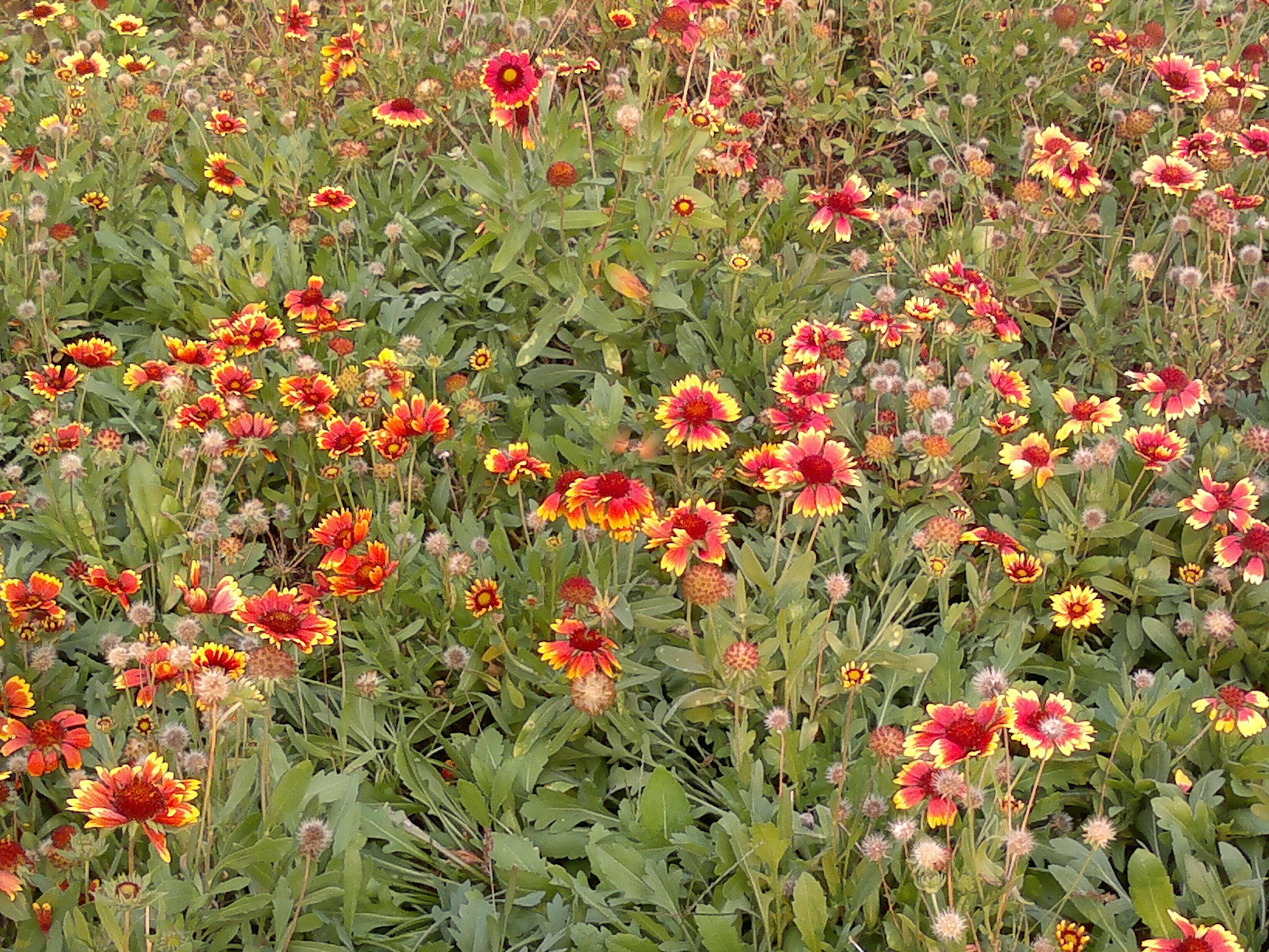 仔细看每种花都很有特点,外边是黄色里边是红色的。