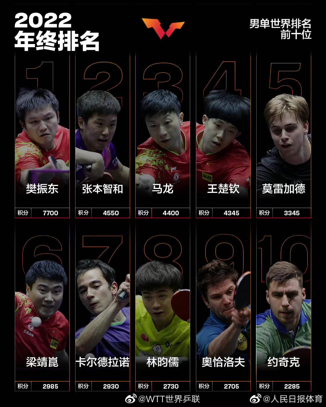 孙颖莎成首位00后年终世界第一(孙颖莎个人世界排名) 2022-12-29 热点新闻 9923 作者:网友投稿 国际乒联2022年终世界排名出炉,中国队小将孙颖莎以8270分收获了自己职业生涯的第一个年终世界第一,这也是00后选手第一次拿到年终第一的成绩。恭喜!